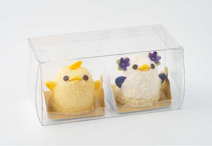 初登場の「横浜春節祭ぴよりん」は、名古屋コーチンの卵を使った濃厚なプリンと桃のジュレを、杏仁風味のババロアで包み、白いスポンジクラムをまとわせた特別仕様。