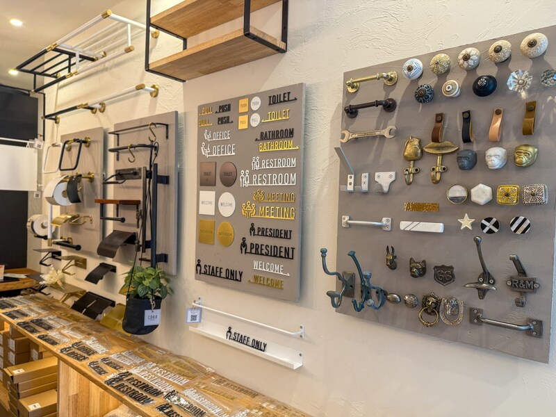 机や棚など店内を彩るインテリアのほとんどは友安製作所の職人によってつくられたもので、展示されている時計や椅子など、値札がついているものはすべて購入が可能だそう。