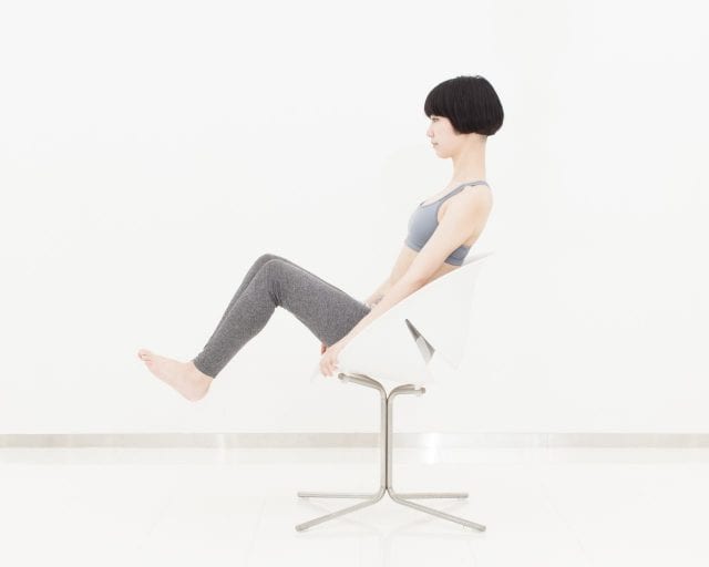 「お腹ぽっこりを解消できない」という方こそぜひ習慣に採り入れたいのが、一気にお腹周りの複数の筋肉にアプローチできる簡単エクササイズです。中でもおすすめが【ニーレイズダブルレッグ】。椅子に座ったままひざを曲げ伸ばしするだけで「腹直筋」と「腸腰筋」を同時に鍛えることができます。なお、実践する際は安全に行うためにも座面が回転しない安定感のある椅子を使用しましょう。