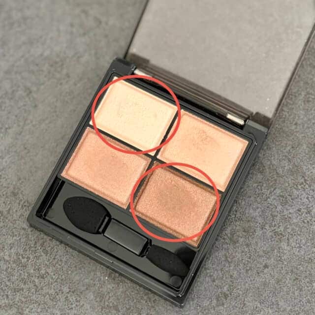 塗り方の鍵は“左上ベースカラー”。最初にまぶた全体へ仕込むことで、くすみをリセットし、後から重ねるブラウンの発色をクリアに整えます。