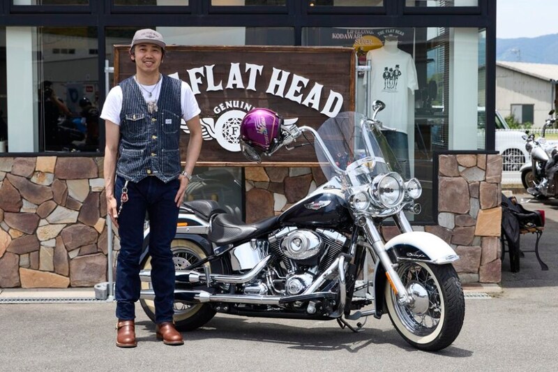「ずっとこのモデルを探していたんです」と話す池田さんは、純正のスタイルにほれ込み、カスタムは最小限に留めているという。フラットヘッドのウォバッシュベストやアクセサリーで、シンプルになりがちな夏の装いにアクセントをプラス。車両に負けないゴージャスな着こなしもお見事だ。