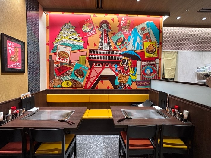 店内には、通天閣や大阪城、馴染みのある大阪らしい観光スポットに、おばちゃんの姿までがユニークなポップアートで表現されており、お食事までの気分もワクワクします。