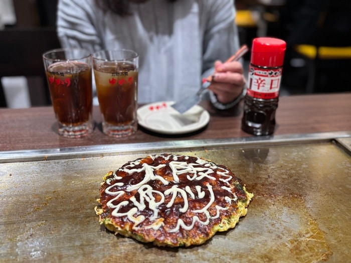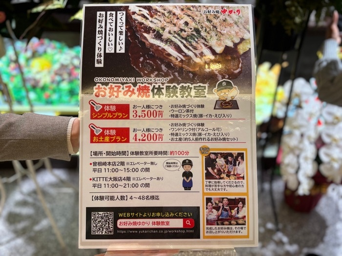 自分で焼く「お好み焼体験教室・3500円(税込)」は、手ぶらで参加OK。
