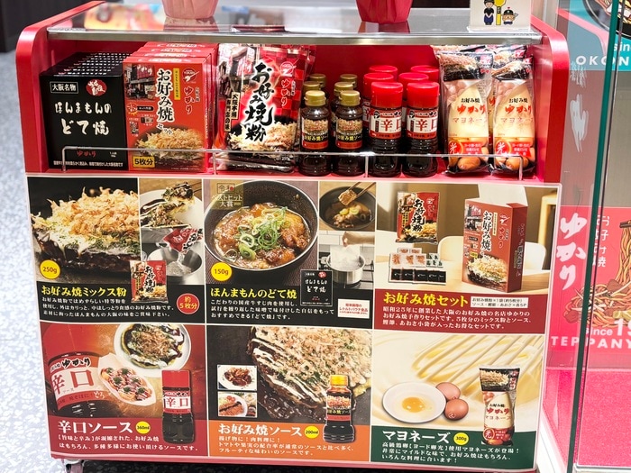 店頭には、お好み焼粉や実際にお店で使用されている、お好み焼ソースやマヨネーズなども販売されています。ご自宅やお土産にもぴったりです。