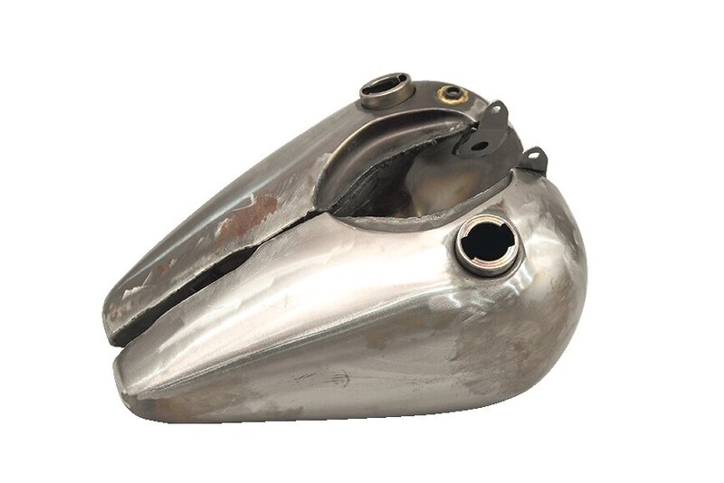 ナックル時代の分割タンク、そのフォルムを克明に再現したコチラのパーツは、そもそも2000年に登場したスーパー“リアル”ナックル用として開発されたもの。当然、既存の社外タンクとは一線を画すこだわりがあふれる。