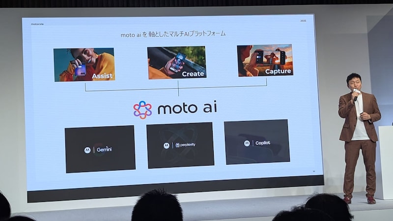 モトローラは特定のAIに依存することなく、ユーザーの用途に応じてエンジンを選んで使えるのが特徴。Gemini、Perplexity、Copilot Visionのいずれも利用できます。