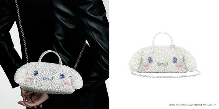 オーバルシルエットのボストン型ショルダーバッグ「CINNAMOROLL」は、価格69,300円(税込)、サイズW:26 H:11 D:7cm、カラーはLATTE METALLICO(オーロラホワイト)。