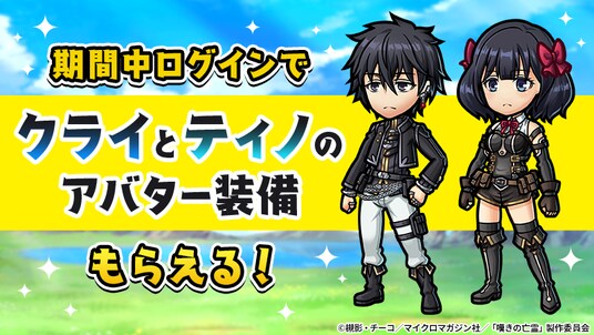 コラボガチャ最大150連分無料!ログインするだけで「クライ」、「ティノ」になりきれるアバター装備がもらえる!