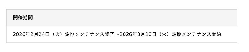 2026年2月24日定期メンテナンスにおいて、「特異点」シリーズのぷちアップデートが行われます。