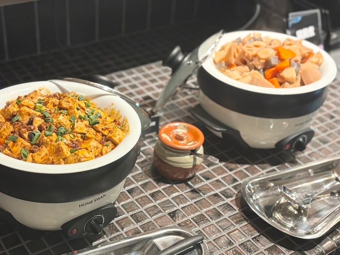 ピリ辛でコク旨な「麻婆豆腐」に、ほっこりした味わいの「筑前煮」まで、ご飯に合うおかずも並んでいます。