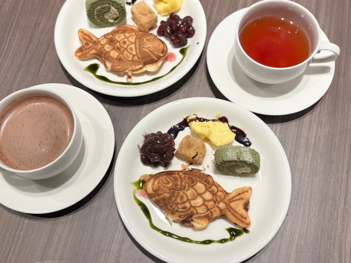 鯛焼きに、わらび餅や抹茶ロールケーキ。ソースなどを利用して、自分好みの”和風スイーツプレート”にアレンジ。盛り付けもビュッフェのお楽しみです。