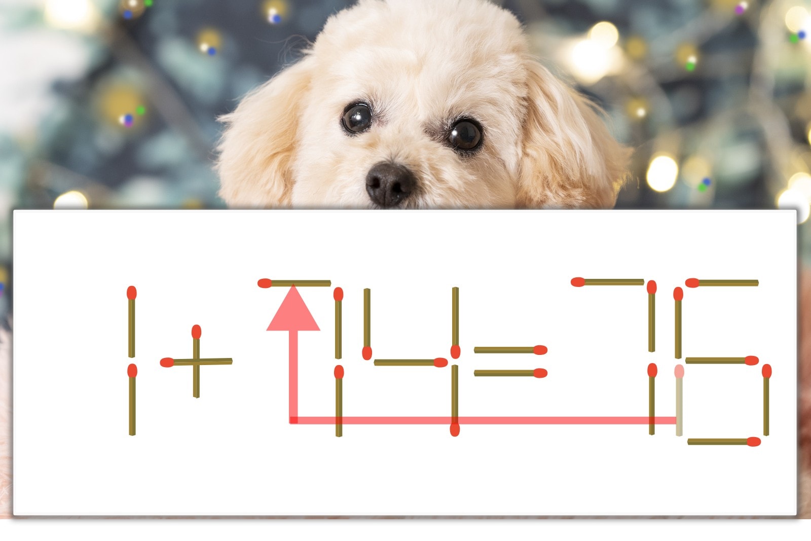 「6」を別の数字に変化させると答えが導き出せます。「6」のマッチ棒を1本移動して、「1」を「7」にしてみましょう。すると、「1+74=75」が成立します。