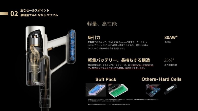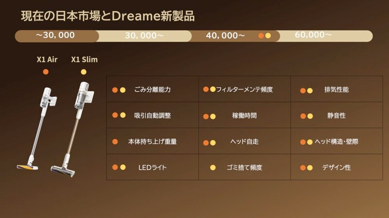 スティック型掃除機は、X1 Air(4万9800円)とX1 Slim(5万0800円)の2種類が発表された。