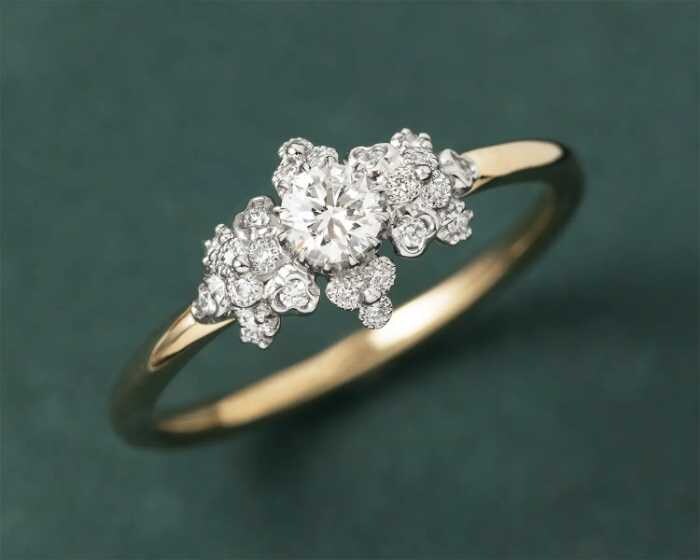 小ぶりながらも熟練の職人技が光る、まさに“歌う花”を指にまとうようなリングです。