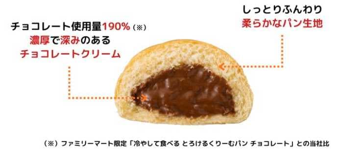 (※ファミリーマート限定「冷やして食べる とろけるくりーむパン チョコレート」との当社比)