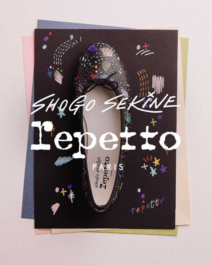 本コレクションは、手書きのタイポグラフィーや花・図形を組み合わせたShogo Sekine氏のアートワークと、レペットのタイムレスな美学を融合した特別なデザインが魅力です。