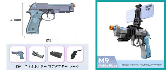 リアルサイズのハンドガンにスマートフォンを搭載してシューティングを楽しみます。