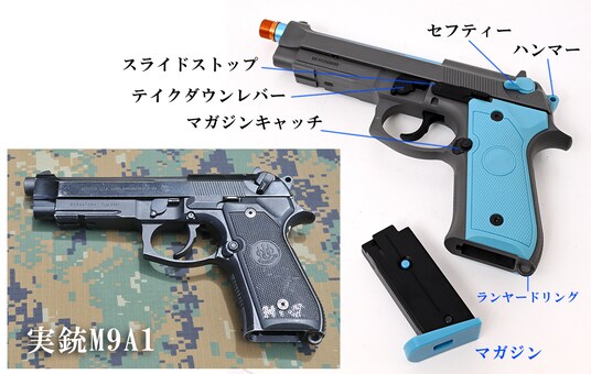 ハンドガンは実銃では大変ポピュラーなハンドガンをリアルサイズで再現しています。
