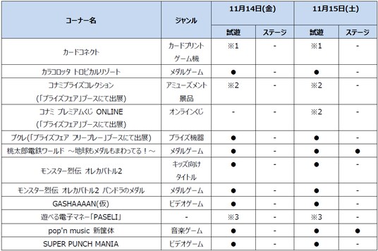 「コナミアーケードゲームスDJ LIVE」は11月15日(土)11:50から12:40を予定しております。
