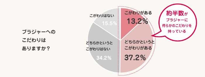 ブラジャーのこだわりについては「こだわりがある」「どちらかというとこだわりがある」が50.4%。