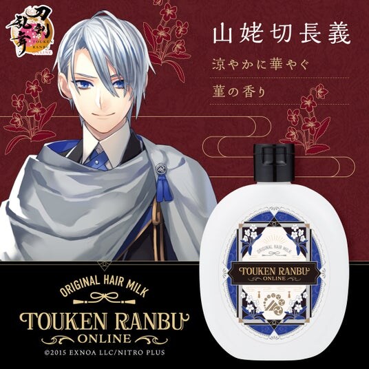 本商品は、PCブラウザ・スマホアプリゲーム「刀剣乱舞ONLINE」に登場する刀剣男士、小竜景光・歌仙兼定・山姥切長義・肥前忠広・一文字則宗の5振りをそれぞれイメージしたアウトバスヘアミルクです。