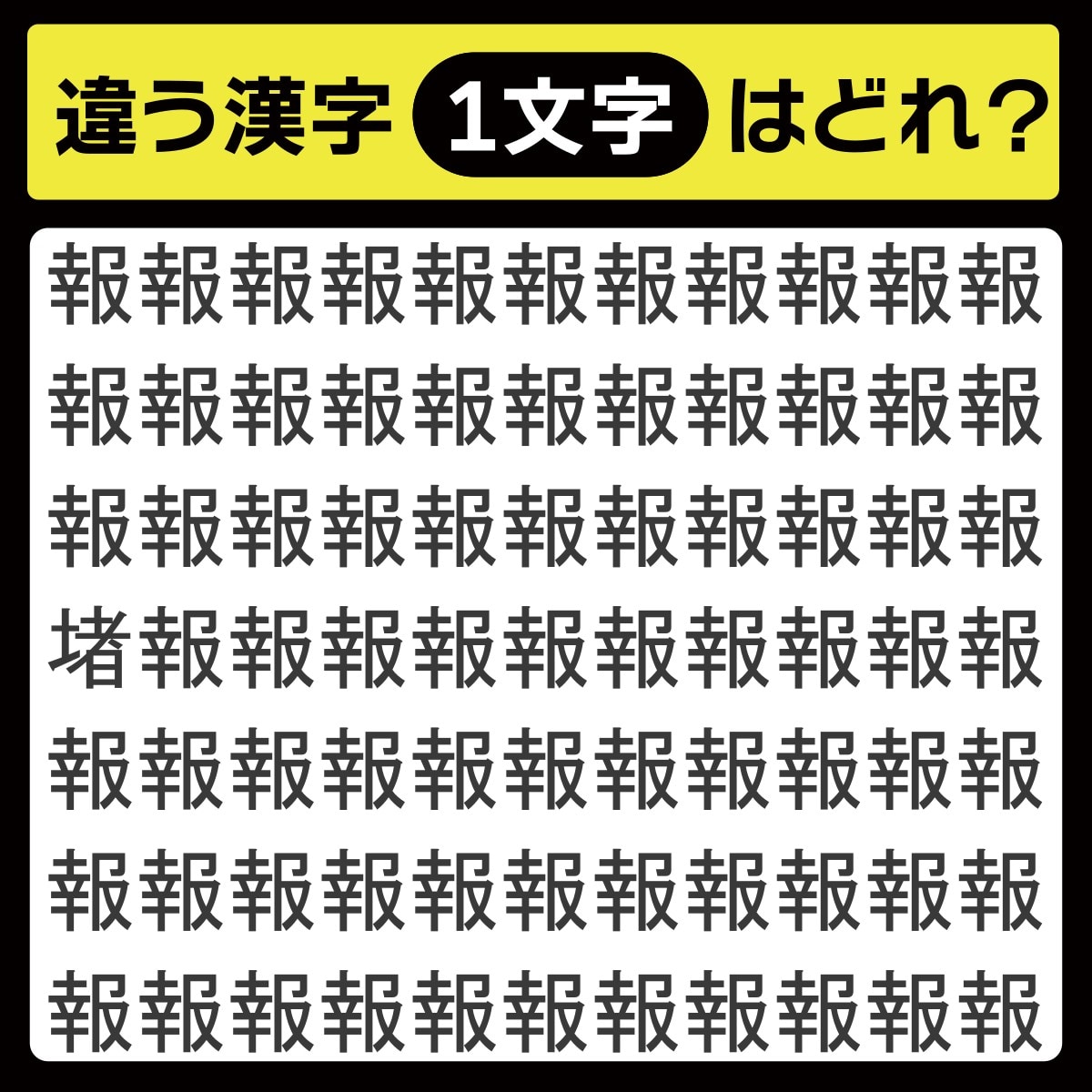 毎日配信中「毎日脳トレ」の時間です! 本日のクイズは「漢字のまちがい探し」に挑戦♪ 同じ漢字が並んでいるように見えますが、実は1つだけ違う漢字が……。よ~く探してみてください!