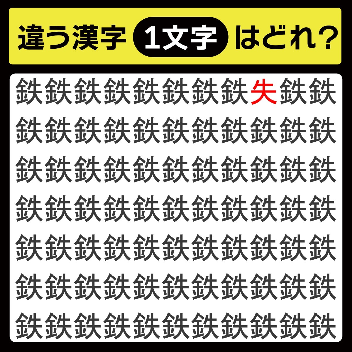 毎日配信中「毎日脳トレ」の時間です! 本日のクイズは「漢字のまちがい探し」に挑戦♪ 同じ漢字が並んでいるように見えますが、実は1つだけ違う漢字が……。よ~く探してみてください!