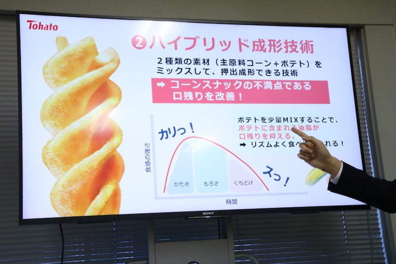 ポテトからコーンに変え、より軽快な心地良い食感が誕生。