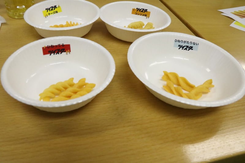 「どんな形状なら無心で食べ続けられるのか」を徹底的に検証したそうで、約20種の形状で試した結果『ツイスト形状』が、無心で食べ続けられるリズム食感をつくることがわかったのだそう。