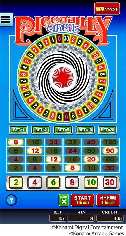 『ピカデリーサーカス』は1976年にKONAMIが開発したメダルゲームで、CPUを使用せずアナログ回路で作動する電子式ルーレットです。2026年で稼働を開始してから50周年を迎えました。