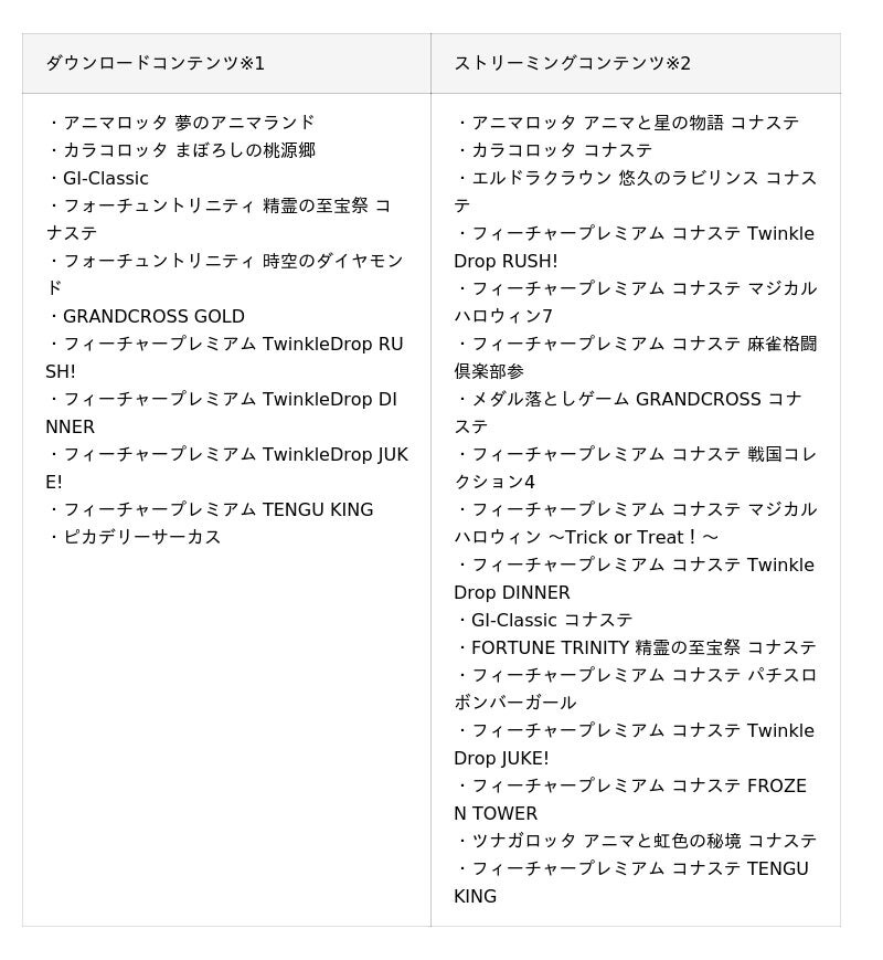 『コナステ メダルコーナー』アプリで遊べるタイトルリスト