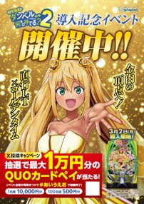 導入4日前となる2月26日(木)から、有名パチンコライター&横川尚隆氏による導入カウントダウン動画をXで公開!フォロー&リポストで毎日5名様にファイルーズあい氏(CV:紗倉ひびき)のサイン入りポスターやQUOカードPay5,000円分が当たるキャンペーンを実施。
