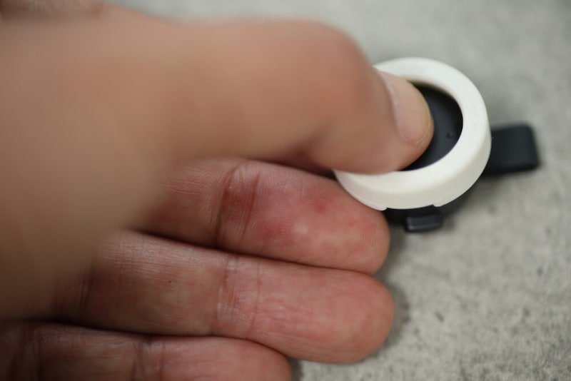 そこで、真ん中に穴を開けることにした。真ん中に穴を開けると、上から押すことでカバーを外せるようになった。さらに穴の大きさや全体の高さを調整し、本体にある複数のマイク穴を塞がないようにしてもらった。