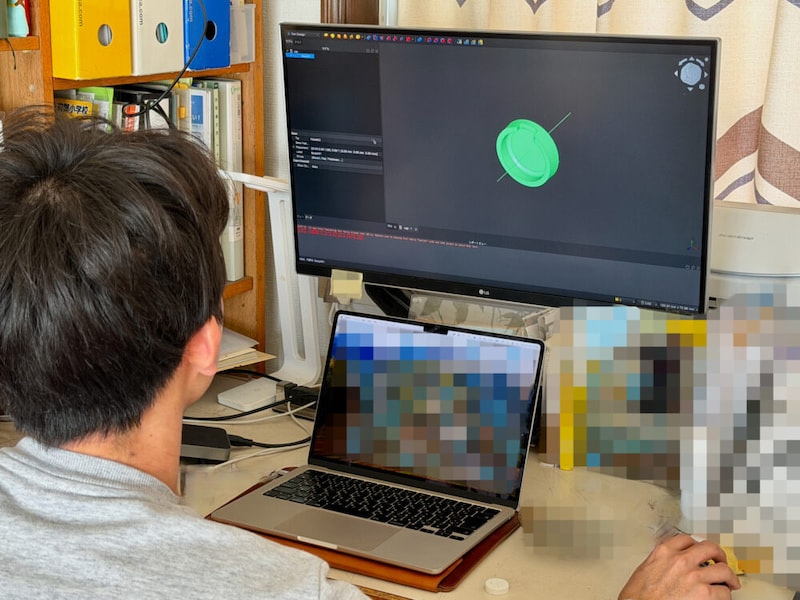 さっそく、息子は3D CADをダウンロードしてきて設計を始めた。設計といっても簡単な円筒形のキャップのような形状のものだが、3D CADは初体験なので、それなりに苦労した模様。とはいえ筆者と違って、まだまだ若いと頭も柔軟で、あっという間に最初の図面を完成させた。