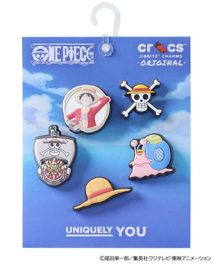 ルフィの麦わら帽子や電伝虫などをセットにしたチャームセット。コラボクロッグをさらに楽しくアレンジできます。