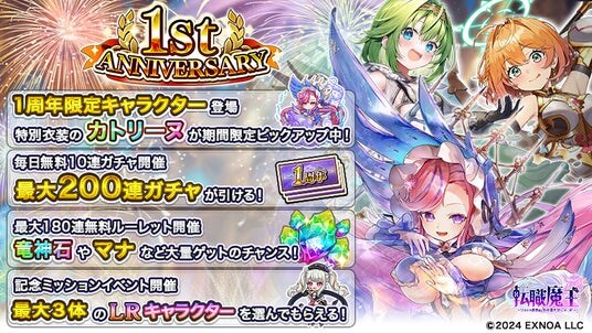 合同会社EXNOA(本社:東京都港区、CEO:東條 寛、URL:https://games.dmm.com/)が運営するDMM GAMESは、『転職魔王~リストラ勇者のお仕置きセレナーデ~』(以下、『転職魔王』)は2025年10月17日(金)にリリース1周年を迎えます。これを記念し、限定キャラクター「LR【1周年】カトリーヌ」の登場や最大200連無料ガチャ、豪華報酬がもらえるルーレットなど、盛りだくさんの「1st Anniversaryキャンペーン」を本日より開催いたします。