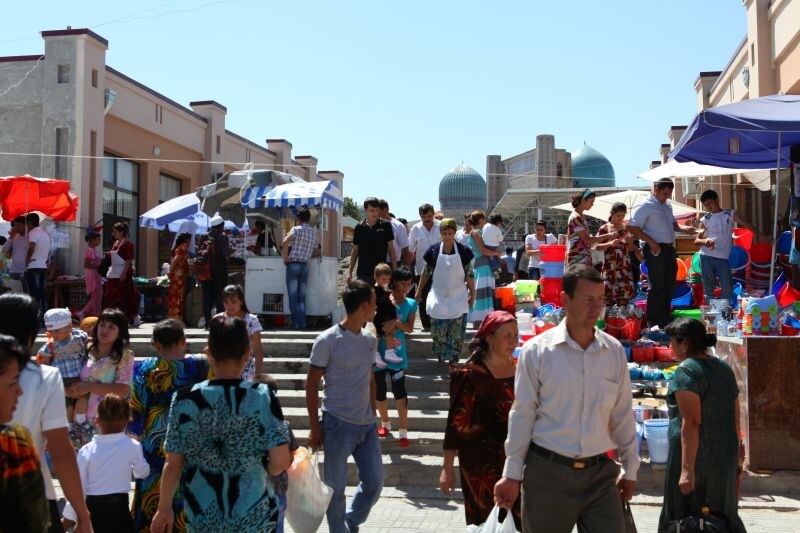 (左)サマルカンド、(右)サマルカンド市場撮影:森卓也