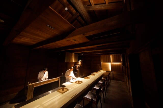 宿の夕食としてはもちろん、一般利用もできるここは、まさに美食家たちの隠れ家。カウンターの目の前で料理を仕上げる圧巻のライブ感が、料理への期待を高めてくれます。
