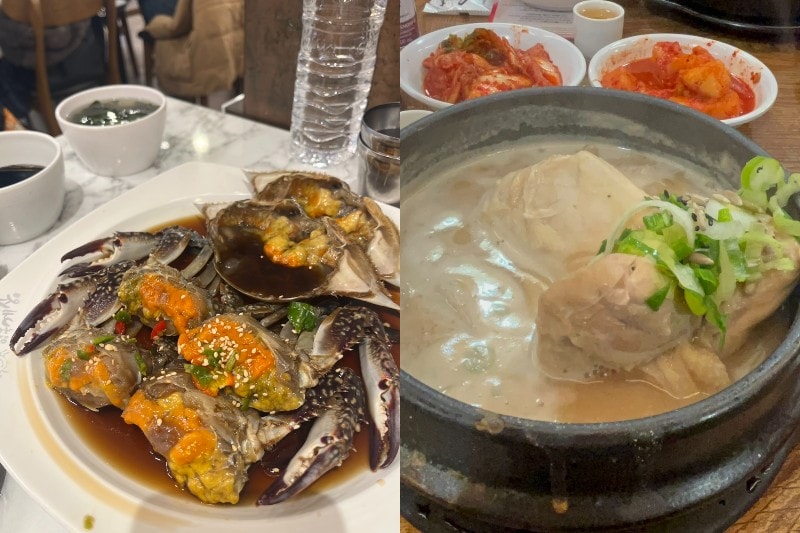 カンジャンケジャンは卵をもつ雌がおすすめ。極寒のソウルで食べる参鶏湯は五臓六腑に染み渡る。