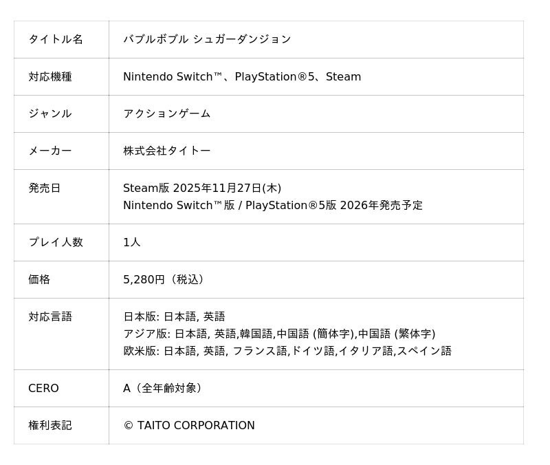 『バブルボブル』シリーズポータル:https://www.taito.co.jp/bub