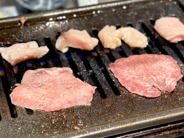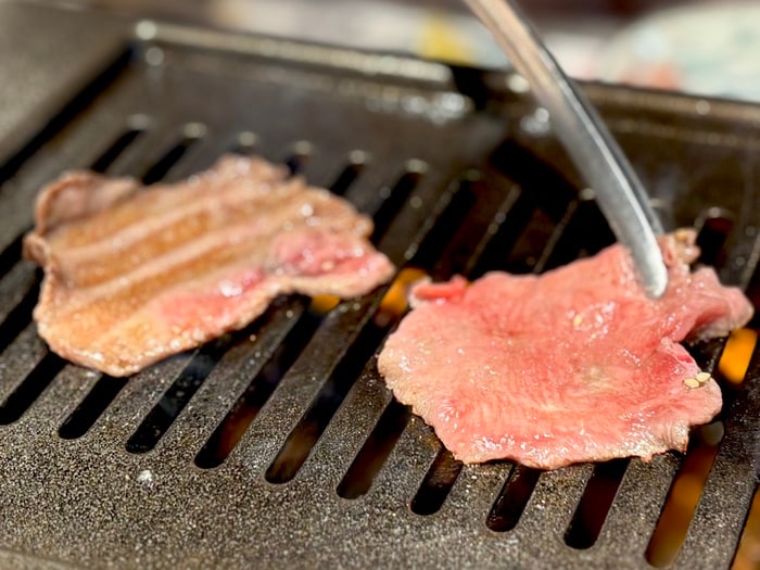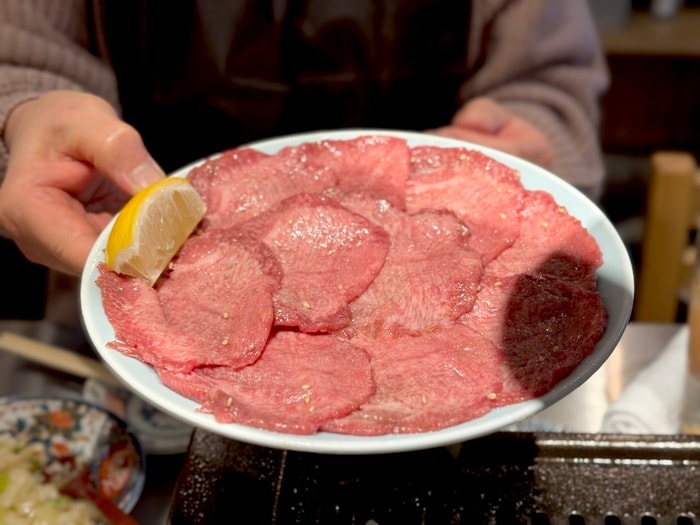 お皿は花びらのように円を描く”タン”程よい薄さにカットされており、ロースターでさっと焼いていただきます。