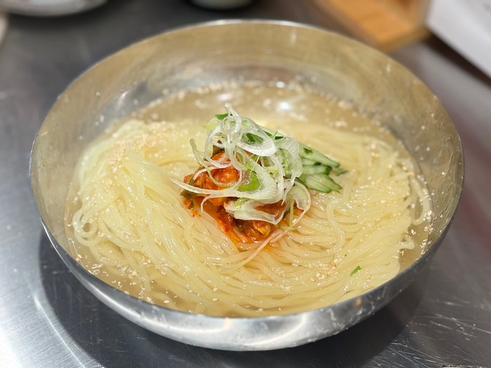 つるっとした喉越しで、弾力のある食感の麺。香り高い和風ベースの冷たいお出汁で仕上げた冷麺です。