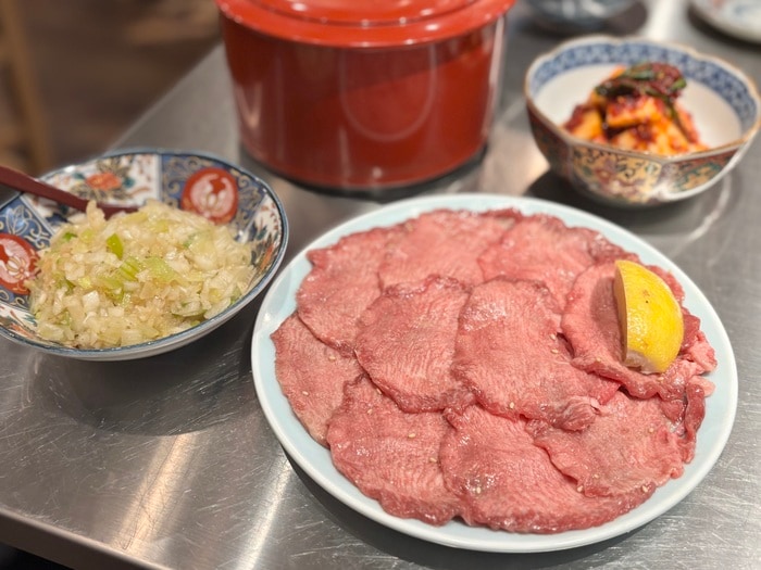 別添えで提供されるザク切りのネギと一緒にいただきます。ジュワっと広がるタンの脂とネギの旨みがたまらない!ご飯がススム一品。