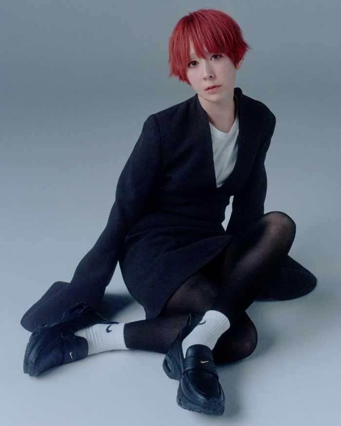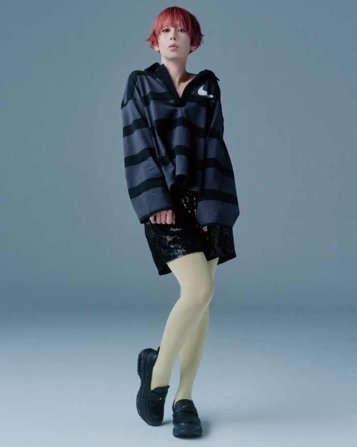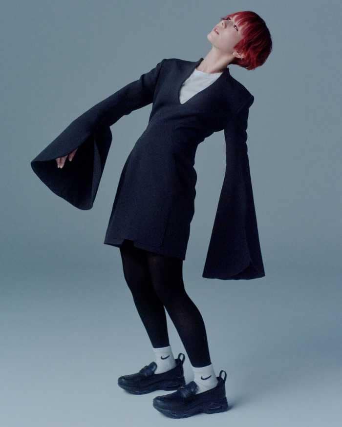 ブラックドレスに合わせたスタイルでは、ヒールとは異なる軽快さが際立ち、フォーマルとストリートをつなぐ新しい足元を完成させます。