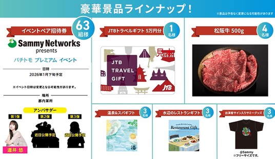※本キャンペーンはサミーネットワークス主催となります。パチンコ/パチスロ店へのお問い合わせはお控えください。