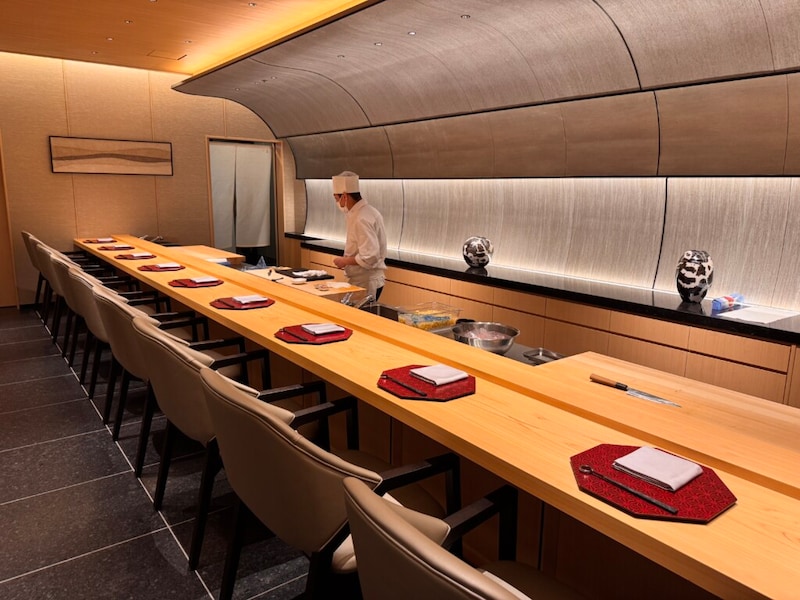ダイニングは、日本料理と中国料理の2本柱で構成される。日本料理では鉄板焼、寿司、天ぷらの各カウンターを備え、職人の技を間近に感じられるライブ感を重視している。