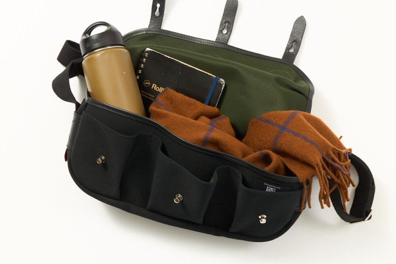 伝統的なフィッシングバッグをモチーフに、日常生活で使いやすい仕様にモディファイ。裏地との間にはフィルムをボンディングしているため耐水性が高く、水が浸み込みにくい。3万1900円