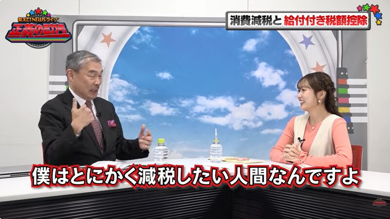 「僕は消費税、減税しとうて(したくて)しょうがない!」と熱弁し、喜びにむせび泣く(?)藤井氏を前に、久保アナも思わず拍手をおくり…!?