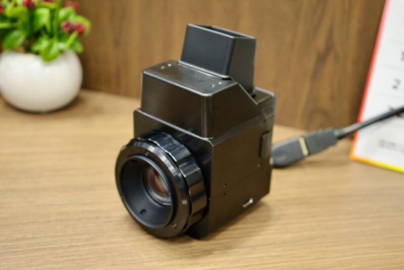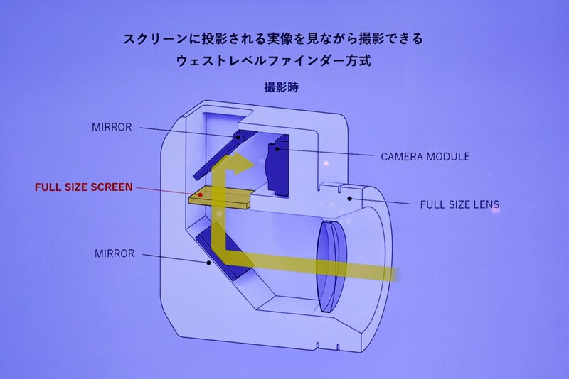直に光を覗くファインダーはプロセスを楽しむことを表現している。1枚撮影するたび、横のレバーを回す、そこに実体を感じる。デジタルプロセスの間にアナログを差し挟むことによって、不完全さも実現しているのだという。