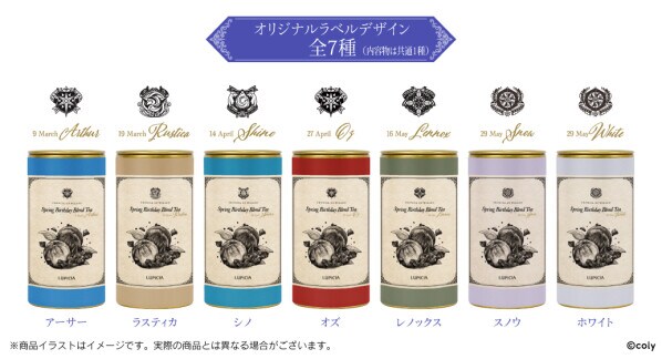 本商品は、3月~5月に誕生日を迎える「アーサー(3月9日)」「ラスティカ(3月19日)」「シノ(4月14日)」「オズ(4月27日)」「レノックス(5月16日)」「スノウ(5月29日)」「ホワイト(5月29日)」の全7種類のオリジナルラベル展開となっておりLUPICIA缶に20g入れ(2.5g×8包)となっております。※内容物は共通1種となります。